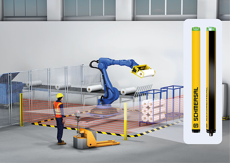 Due to their increased ranges, the new versions of the SLC440COM/SLG440COM can now also be used to reliably protect very large production systems, conveyors or the platforms of autonomous underground railways. With the help of deflecting mirrors, entire areas can also be secured and monitored with just one safety light curtain or grid. This solution reduces both the installation effort and the acquisition costs.