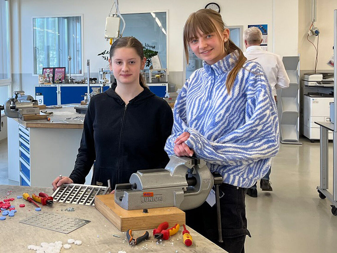 Under the guidance of trainer Vera Mummel, the girls produced a " Connect Four" game made of metal in Schmersal's training workshop, which they could take home after their work was done. Vera Mummel also informed the participants about technical apprenticeships at Schmersal, such as mechatronics engineer or toolmaker.