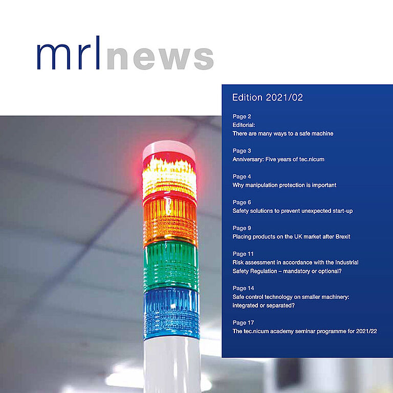 In this section we provide you with background information on machine safety, for example in the form of brochures and information sheets from trade associations. In particular, you will find current and past issues of MRL News. In our magazine, our experts write about specific topics in the field of machine safety – and often refer you to further literature.