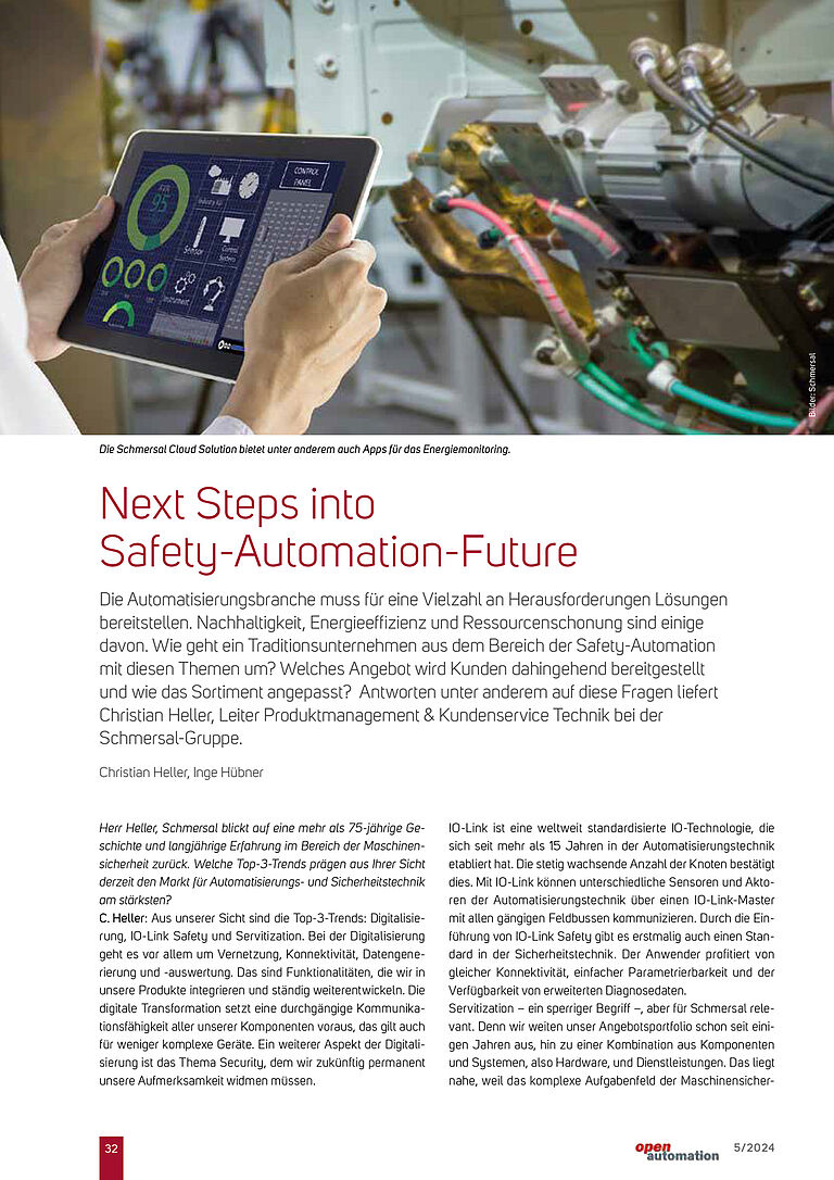 Author: Volker Heinzer, product manager for programmable electronic systems and Industry 4.0/IIoT,Schmersal Group