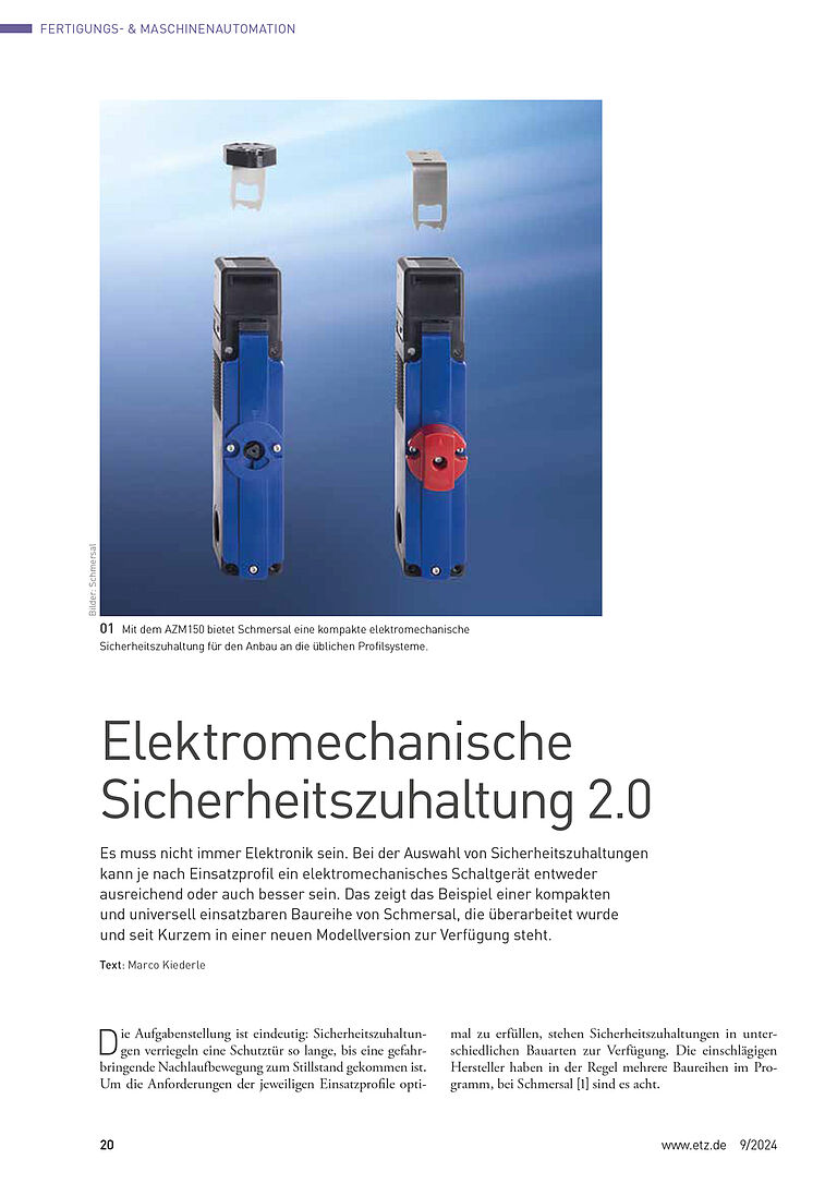 It doesn’t always have to be electronics. When selecting solenoid interlocks, an electromechanical switching device can be either sufficient or even better, depending on the application profile. This is shown by the example of a compact and universally applicable series from Schmersal, which has been revised and is now available in a new model version.