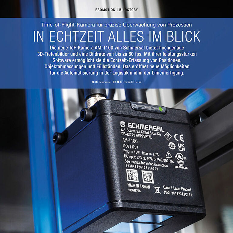 Zum Portfolio von Schmersal gehört jetzt auch eine 3D-Kamera, die Prozesse in Echtzeit erfasst. Damit wird das Portfolio an optoelektronischen Systemkomponenten für Intralogistik und Automatisierungstechnik erweitert.