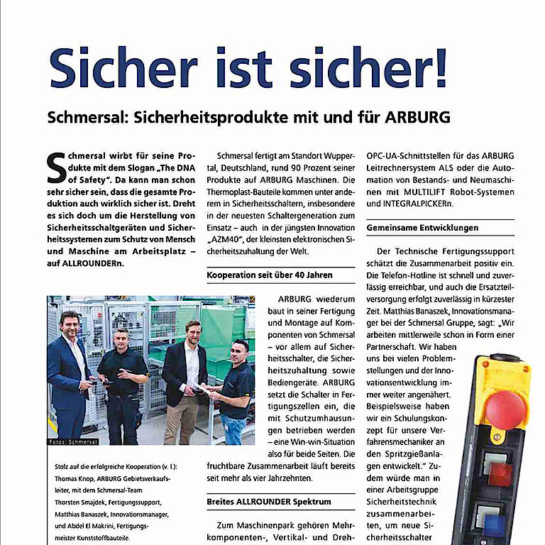 Schmersal: Sicherheitsprodukte mit und für ARBURG
