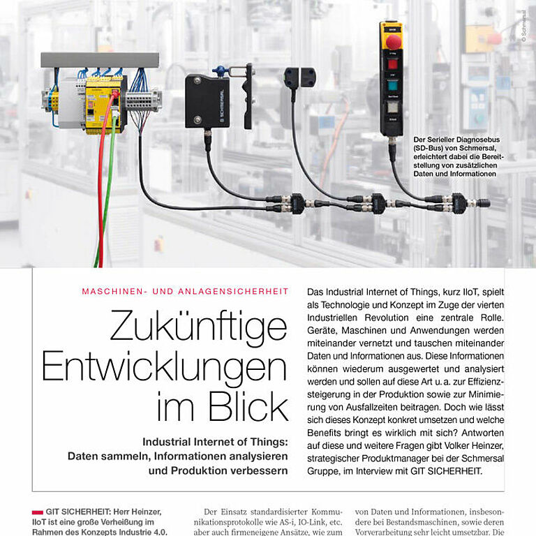 Das Industrial Internet of Things, kurz IIoT, spielt als Technologie und Konzept im Zuge der vierten Industriellen Revolution eine zentrale Rolle. Geräte, Maschinen und Anwendungen werden miteinander vernetzt und tauschen miteinander Daten und Informationen aus. Diese Informationen können wiederum ausgewertet und analysiert werden und sollen auf diese Art u.a. zur Effizienzsteigerung in der Produktion sowie zur Minimierung von Ausfallzeiten beitragen. Doch wie lässt sich dieses Konzept konkret umsetzen und welche Benefits bringt es wirklich mit sich? Antworten auf diese und weitere Fragen gibt Volker Heinzer, strategischer Produktmanager bei der Schmersal Gruppe, im Interview mit GIT SICHERHEIT.