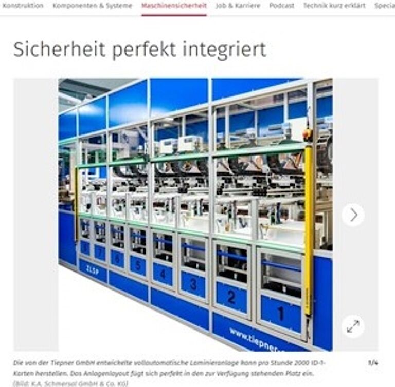 Ein Sondermaschinenbauer hat eine Anlage für die automatisierte Produktion von Plastikkarten wie etwa Scheckkarten entwickelt und gebaut, die sich durch ein ausgeklügeltes Sicherheitskonzept auszeichnet.