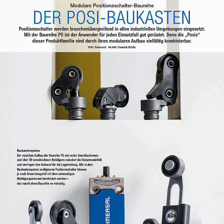 Positionsschalter werden branchenübergreifend in allen industriellen Umgebungen eingesetzt. Mit der Baureihe PS ist der Anwender für jeden Einsatzfall gut gerüstet. Denn die „Posis“ dieser Produktfamilie sind durch ihren modularen Aufbau vielfältig kombinierbar.