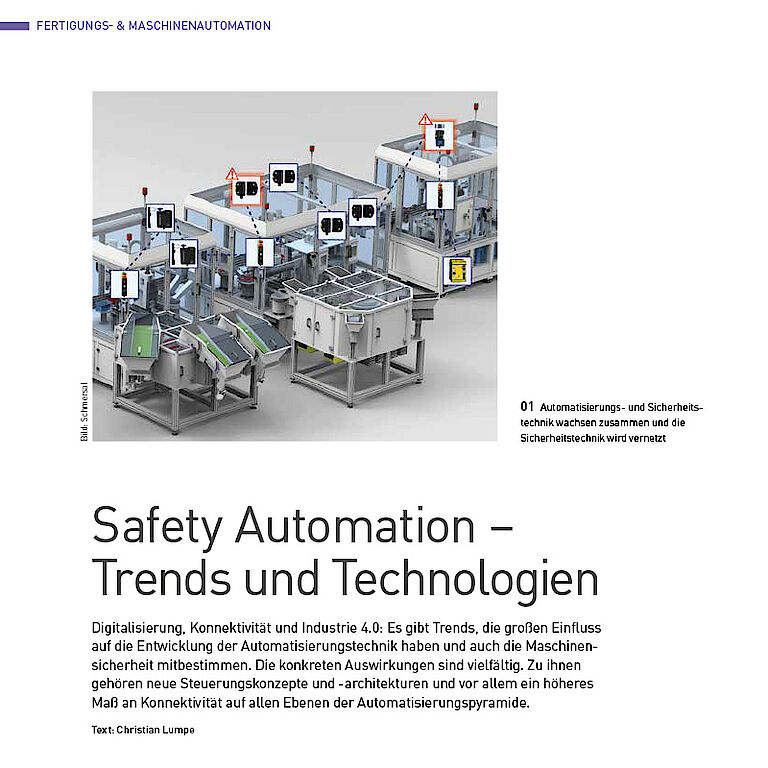 Digitalisierung, Konnektivität und Industrie 4.0: Es gibt Trends, die großen Einfluss auf die Entwicklung der Automatisierungstechnik haben und auch die Maschinensicherheit mitbestimmen. Die konkreten Auswirkungen sind vielfältig. Zu ihnen gehören neue Steuerungskonzepte und -architekturen und vor allem ein höheres Maß an Konnektivität auf allen Ebenen der Automatisierungspyramide.