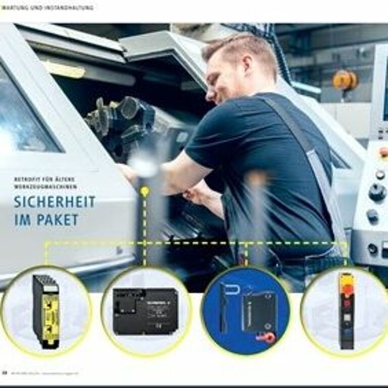 Alt, aber funktionsfähig, Sicherheit nicht mehr normgerecht: Für ein sicherheitstechnisches Retrofit an Maschinen mit gefährlichen Nachlaufbewegungen, zum Beispiel an Drehmaschinen, steht dem Betreiber eine einfache Paketlösung mit aufeinander abgestimmten Komponenten zur Verfügung.