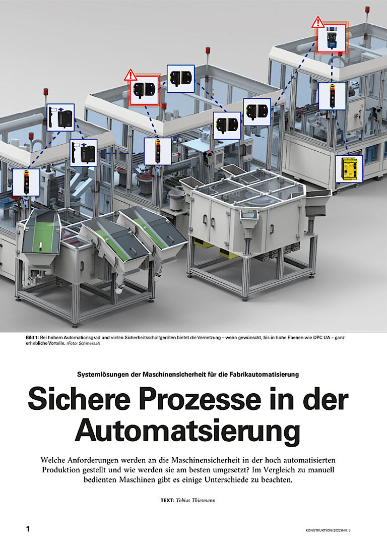 Die Sicherheitstechnik gewinnt in der Automatisierung weiter an Bedeutung. Ziel sind zuverlässig arbeitende Maschinen und Anlagen, bei denen neben der Produktivität vor allem die Sicherheit der Mitarbeiter im Vordergrund steht. Welchen Einfluss die Digitalisierung sowie die aktuelle Situation bei der Materialbeschaffung auf die Entwicklung des Unternehmens haben, erläutern Philip Schmersal, Geschäftsführender Gesellschafter, sowie Edgar Stadler, Divisionsleiter Technik, bei der K.A. Schmersal GmbH & Co. KG in Wuppertal