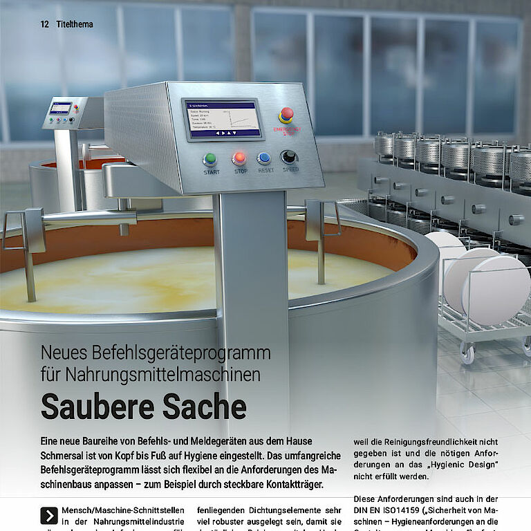 Eine neue Baureihe von Befehls- und Meldegeräten aus dem Hause Schmersal ist von Kopf bis Fuß auf Hygiene eingestellt. Das umfangreiche Befehlsgeräteprogramm lässt sich flexibel an die Anforderungen des Maschinenbaus anpassen – zum Beispiel durch steckbare Kontaktträger.