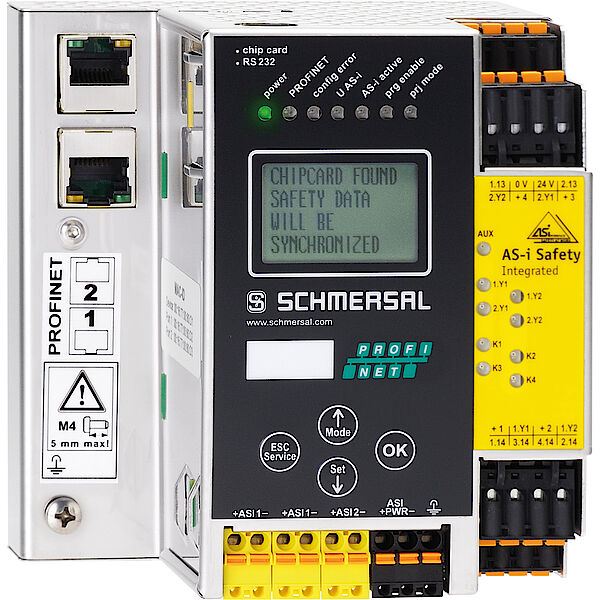 Schmersal bietet seinen Kunden ein breites Programm an Sicherheitsschaltern mit integrierter AS-Interface Safety at Work-Schnittstelle. Dabei handelt es sich um das erste sichere Bussystem, das auf dem offenen Standard AS-International (AS-i) basiert. Sicherheitskomponenten wie NOT-HALT, Sicherheitsschalter, Sicherheitszuhaltungen, Sicherheitssensoren oder Sicherheitslichtvorhänge werden einfach über die AS-Interface Profilleitung miteinander vernetzt.